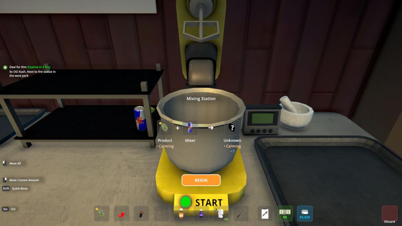 Ao combinar os produtos base com ingredientes, você pode criar novas cepas e misturas. Os ingredientes também têm um impacto nos efeitos finais do produto criado. Embora existam apenas quatro produtos disponíveis imediatamente, os restantes serão desbloqueados à medida que você avança nas fileiras.