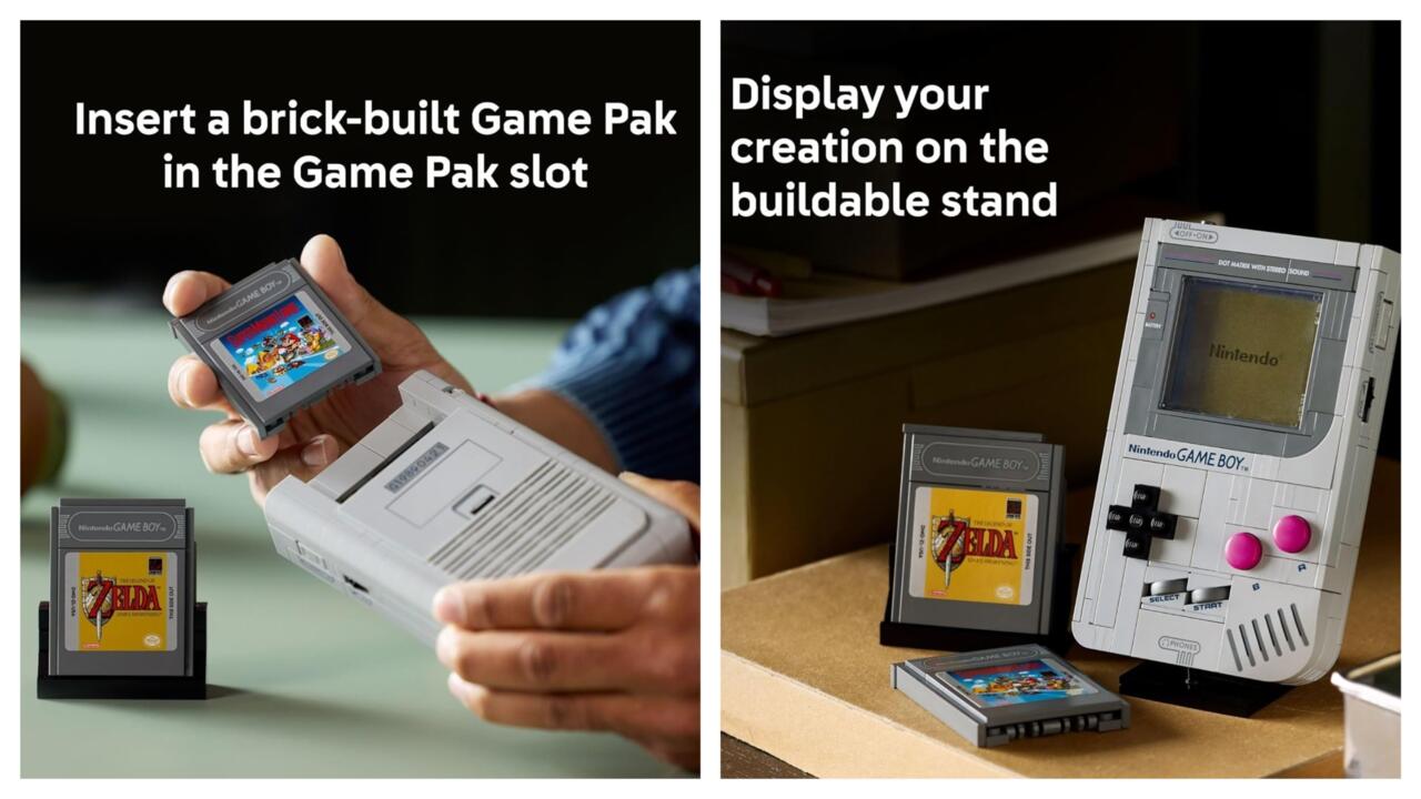 Juntamente com o próprio Game Boy e um estande construtável, o conjunto inclui o jogo de réplica Paks (cartuchos) de dois clássicos atemporais: Super Mario Land (1989) e The Legend of Zelda: Link’s Awakening (1993). Os cartuchos podem ser carregados no jogo Pak, como um garoto de jogo real. Você pode exibir o outro cartucho em um segundo estande construtor.
