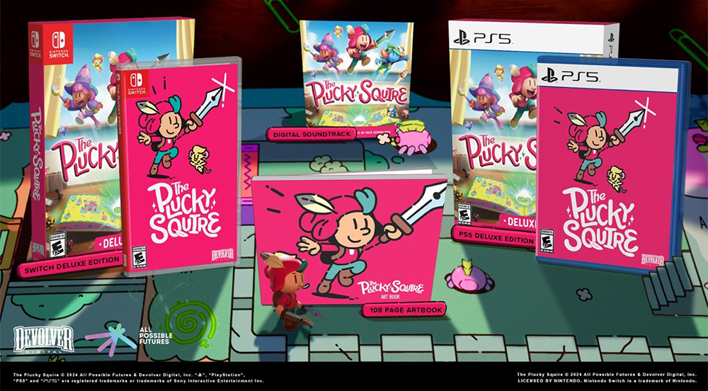 A corajosa Squire Devolver Deluxe Edition custa US $ 55 e vem com uma cópia física do jogo no Switch PS5 ou Nintendo, além dos seguintes extras: