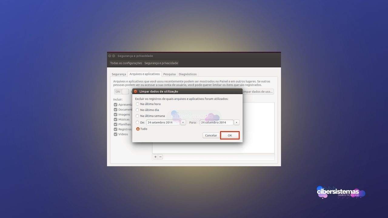 Se, em algum momento, você desejar limpar o histórico de arquivos de forma imediata, o Ubuntu oferece uma opção prática para isso.